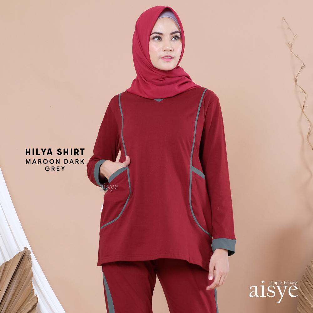 AISYE – HILYA SHIRT MAROON DARK GREY