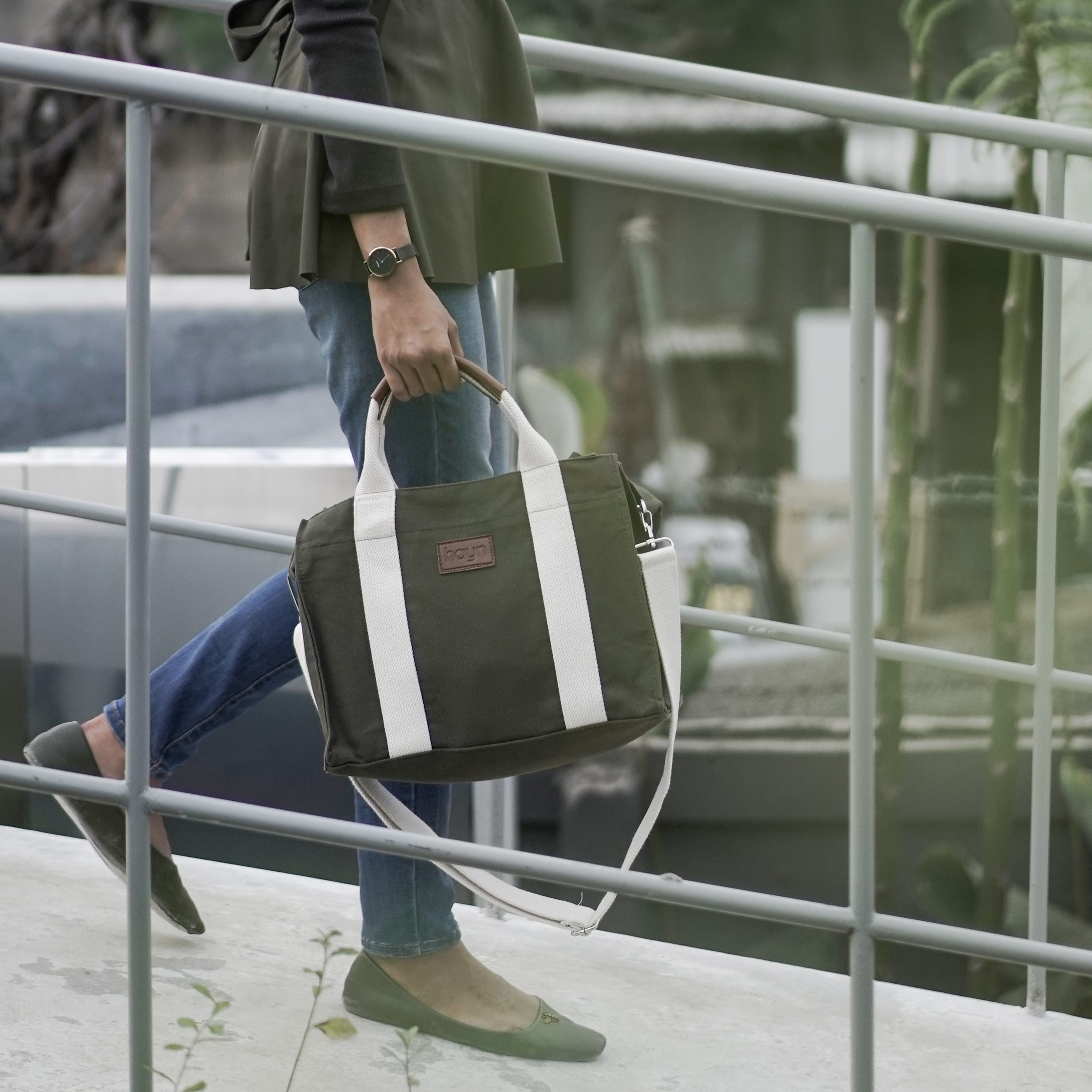 Hayn bag terbuat dari bahan kanvas tebal dan memiliki 4 saku fungsional dibagian dalam tas. Terdapat juga tali selempang sebagai pilihan dengan bahan tali adalah katun tebal dan kuat. Terdapat logo emboss berbahan semi kulit bertuliskan brand Hayn didepan tas, difungsikan sebagai awareness terhadap logo hayn. Hayn Jeju Bag dapat menampung 11 barang berbeda di dalamnya. Pemakaian Hayn Jeju Bag yaitu dapat menjadi tas jinjing ataupun tas selempang. Disarankan untuk tidak membawa beban lebih dari 5 kg.