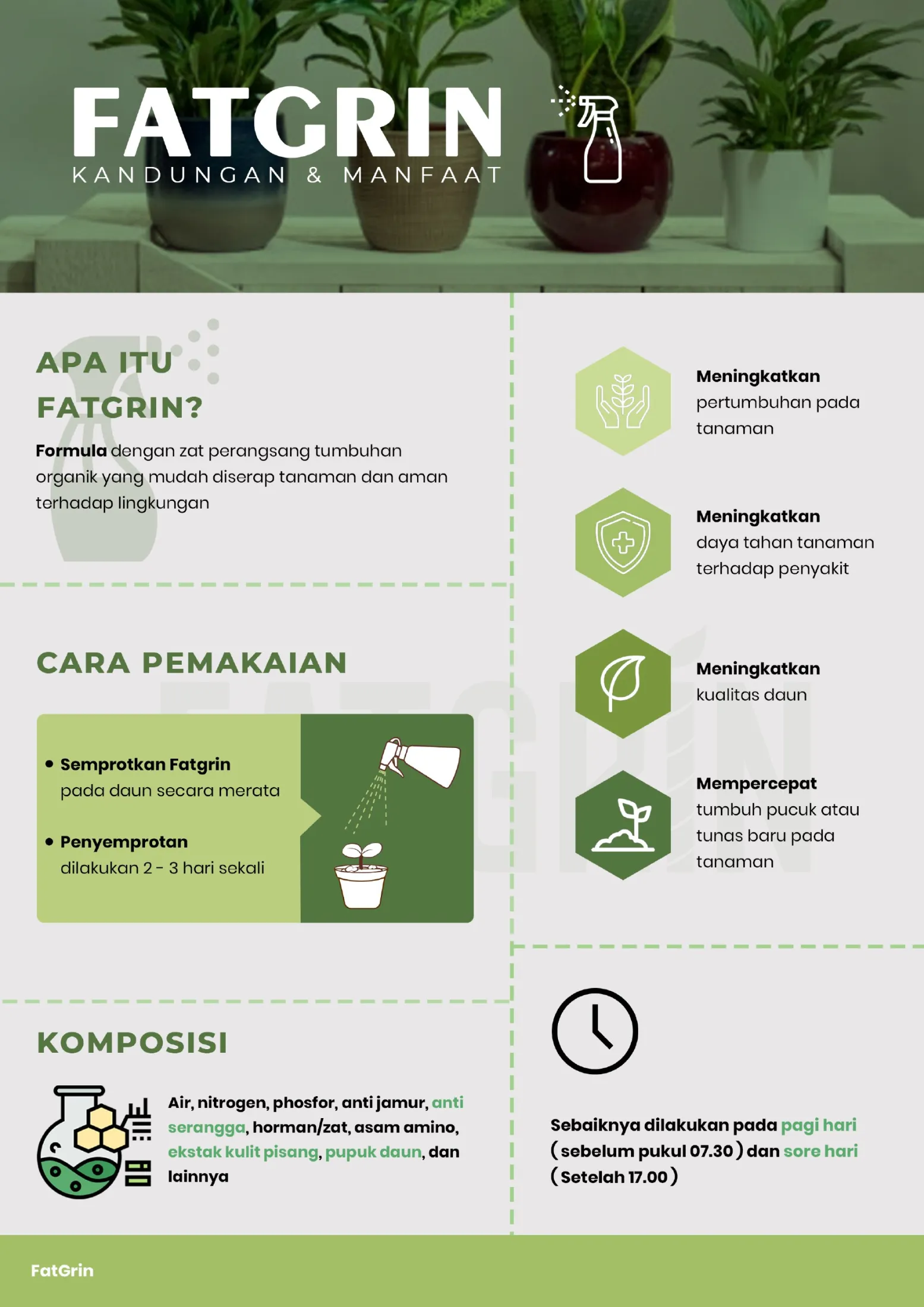 – Semprotkan FatGrin pada daun secara merata