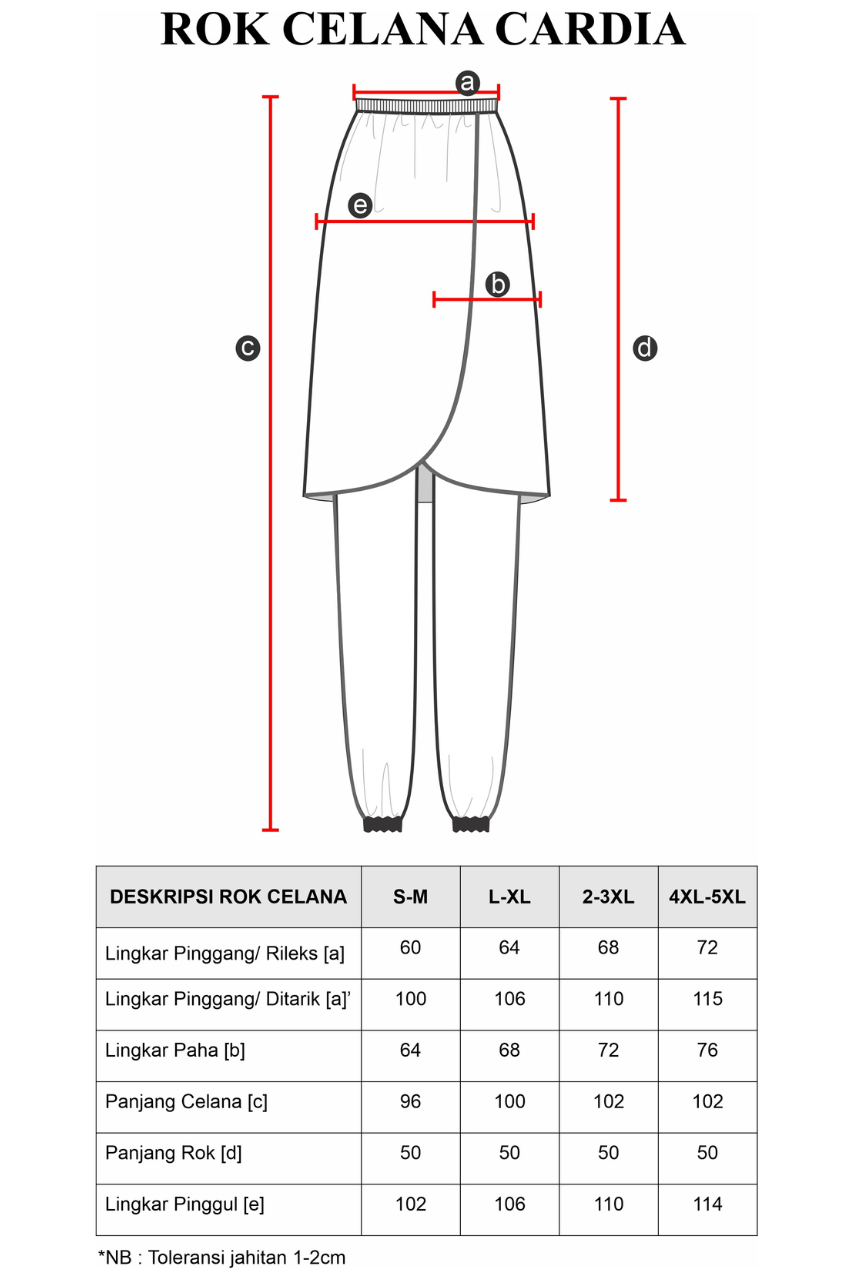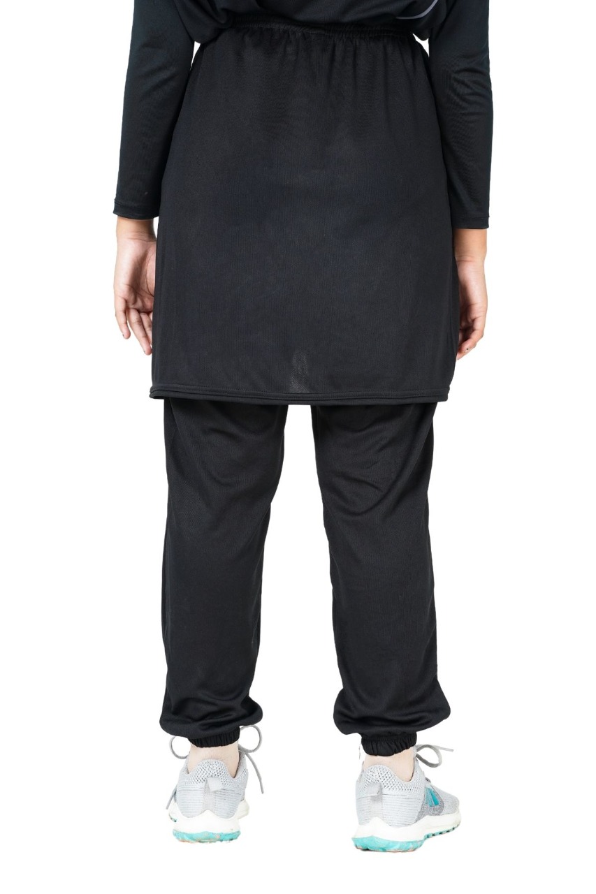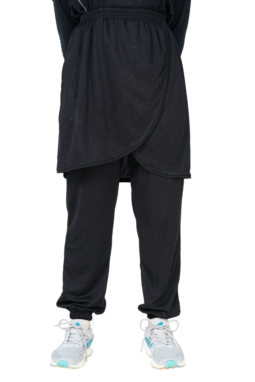 Deskripsi : Cardia adalah perpaduan celana dan rok sampai lutut yang sudah dijahit menyatu, Dengan aksen List yang dipadukan warna dasar hitam yang elegant dan cutting depan menyilang. Dilengkapi saku di sisi kanan rok, full karet pinggang serta karet pada ujung celana (joger), Menggunakan bahan Dry-co dari campuran polyester, spandex dan nilon yang sudah dikenal memiliki sifat lentur dan padat, Kaos dengan bahan dry-co seringkali digunakan untuk olahraga dengan aktifitas penggunaannya agar tetap kering dan nyaman saat berolahraga.