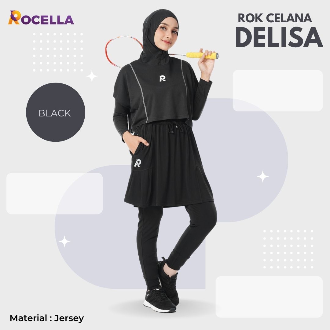 Delisa merupakan perpaduan Rok dan Celana Running yang dijahit menyatu, dengan potongan design yang simple dan terdapat detail lipit pada bagian bawah sisi kanan-kiri yang memberi kesan Feminim, sangat tepat untuk menemani aktivitas olahragamu baik didalam ataupun diluar ruangan, seperti yoga, pilates, pound fit dan aktivitas olahraga lainnya. Menggunakan material Jersey yang memiliki serat yang padat, elastis, lembut dan nyaman digunakan. Memiliki variasi warna Black dan Dark Grey.