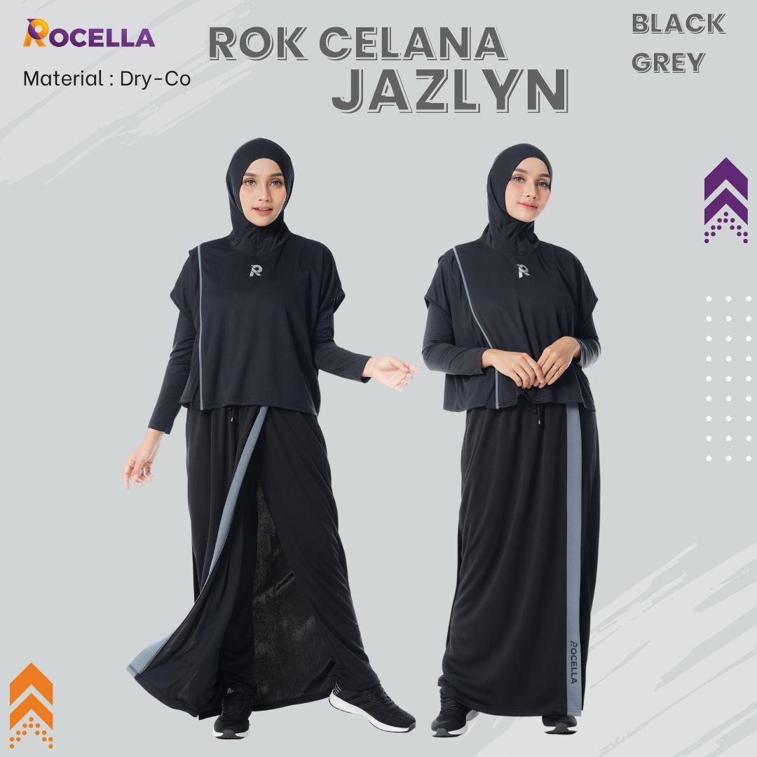 Rok celana Jazlyn merupakan perpaduan antara rok dan celana dengan A-simetris design di bagian depan. Berbahan dasar Dry-co yang terdiri dari campuran polyester, spandex dan nilon yang memiliki sifat elastis, padat dan nyaman, tepat untuk menemani aktivitas olahragamu baik didalam ataupun diluar ruangan, seperti memanah, senam, running dan aktivitas olahraga lainnya. Memiliki variasi warna Black dan Black-Grey