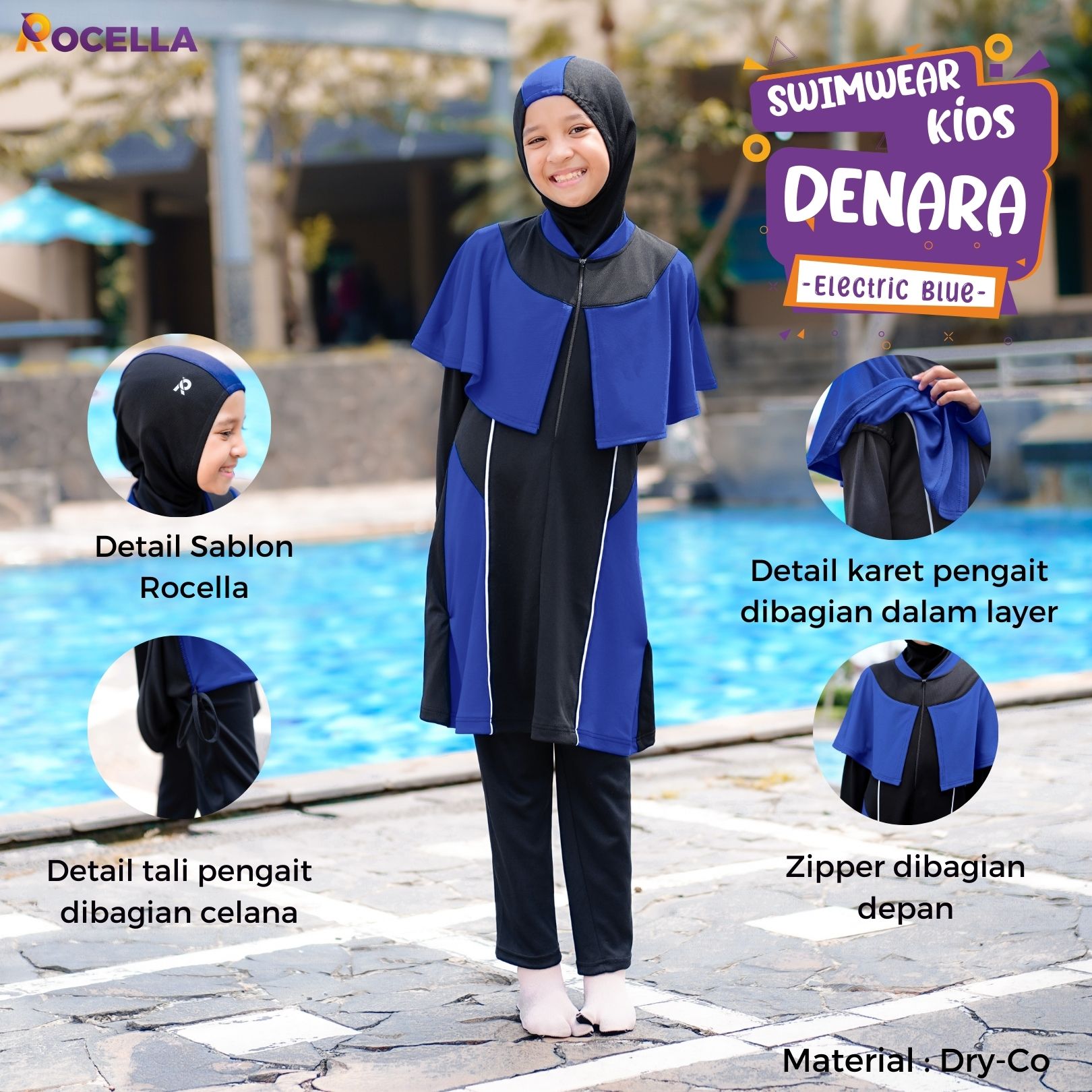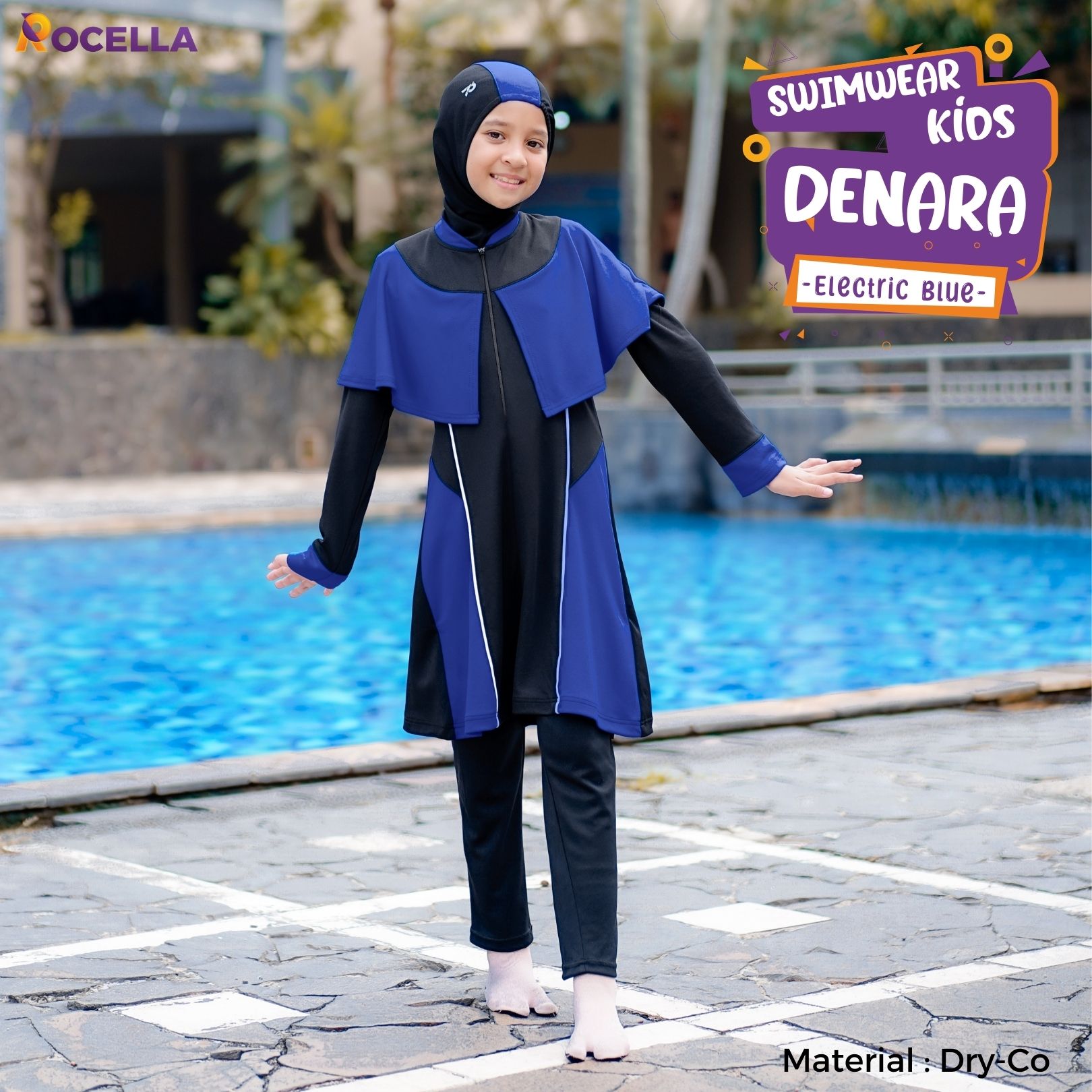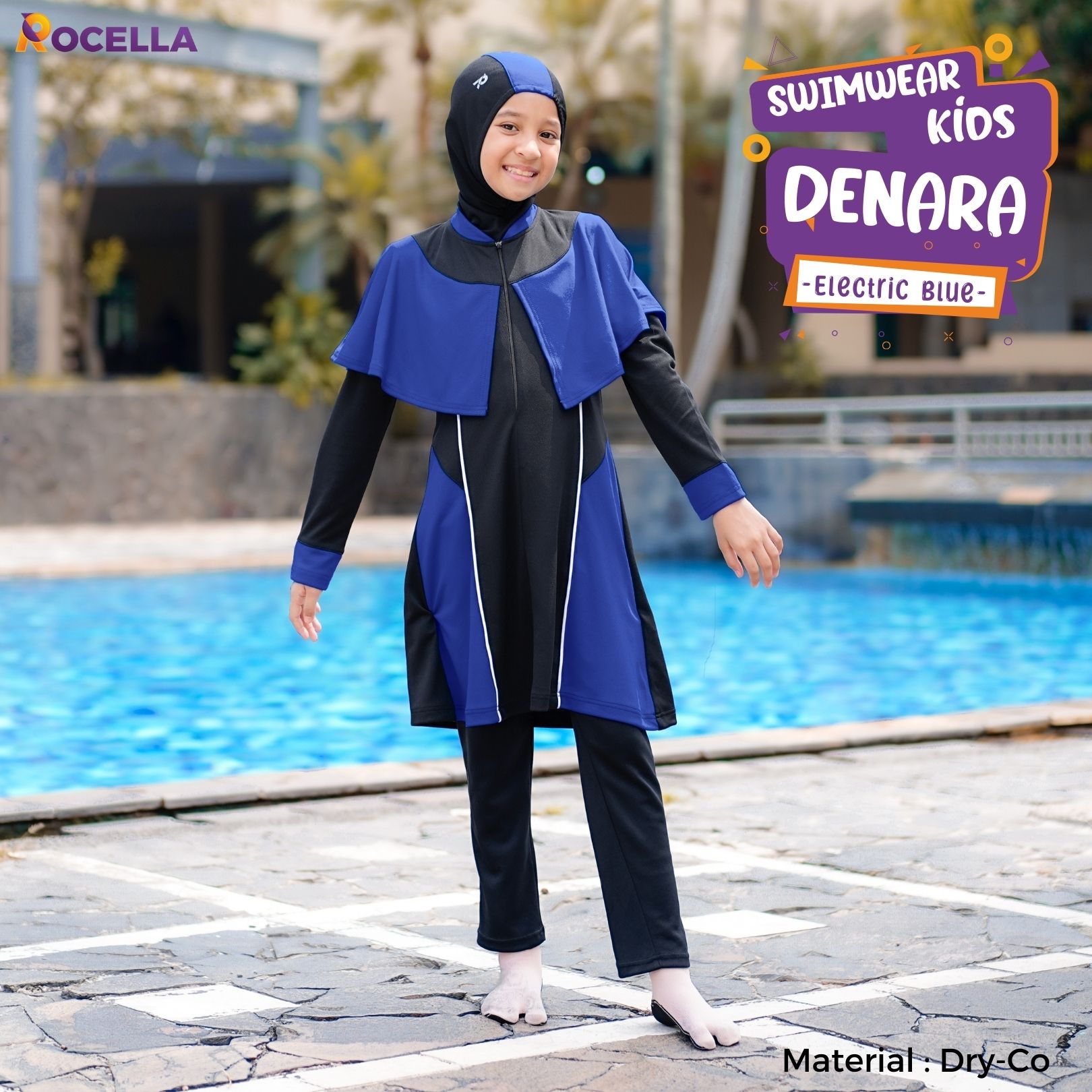 Swimwear Denara adalah Setelan renang anak Muslimah dengan design simple dan girly, dengan potongan sabrina yang menutup bagian dada dan disertai dengan tali pengikat dibagian dalam sehingga aman pada saat berenang. Terdiri dari 3 bagian: Kaos, Celana Legging dan Hijab. Berbahan dasar Dry-co yang terdiri dari campuran polyester, spandex dan nilon yang memiliki sifat elastis, padat, mudah kering dan nyaman digunakan untuk aktivitas renang buah hati bunda. Memiliki variasi warna Maroon, Electric Blue, Black dan Grey