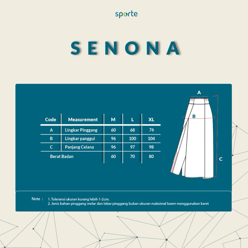 • M: Lingkar Pinggang 60cm; Panjang Celana 96cm