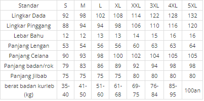 - Baju, celana tersambung (jumpsuit), kerudung terpisah dan terdapat penutup kepala